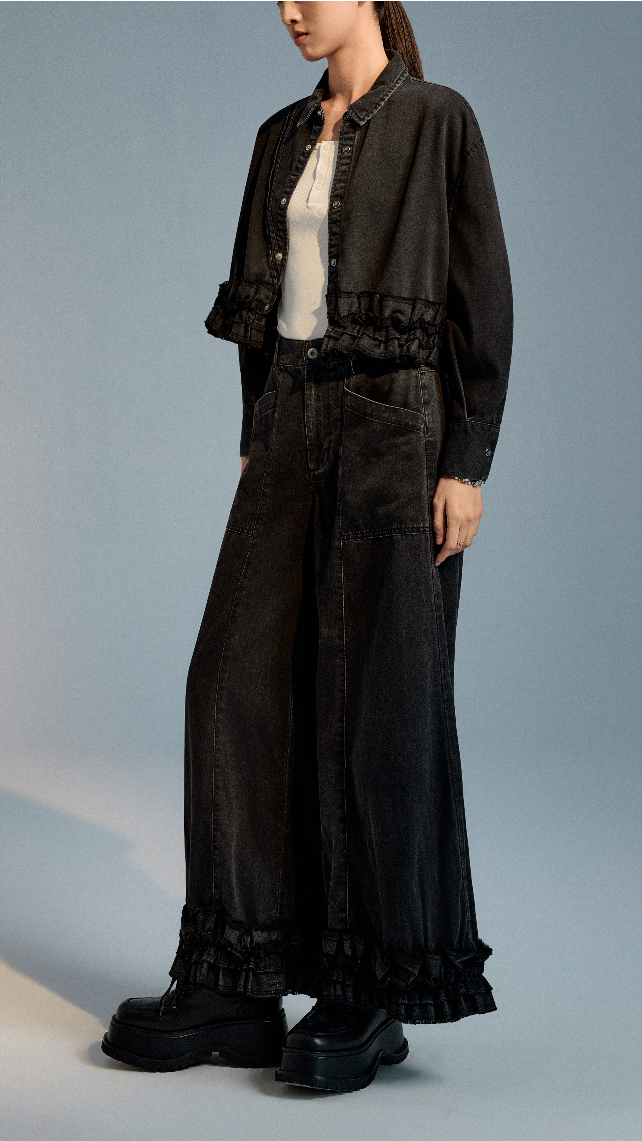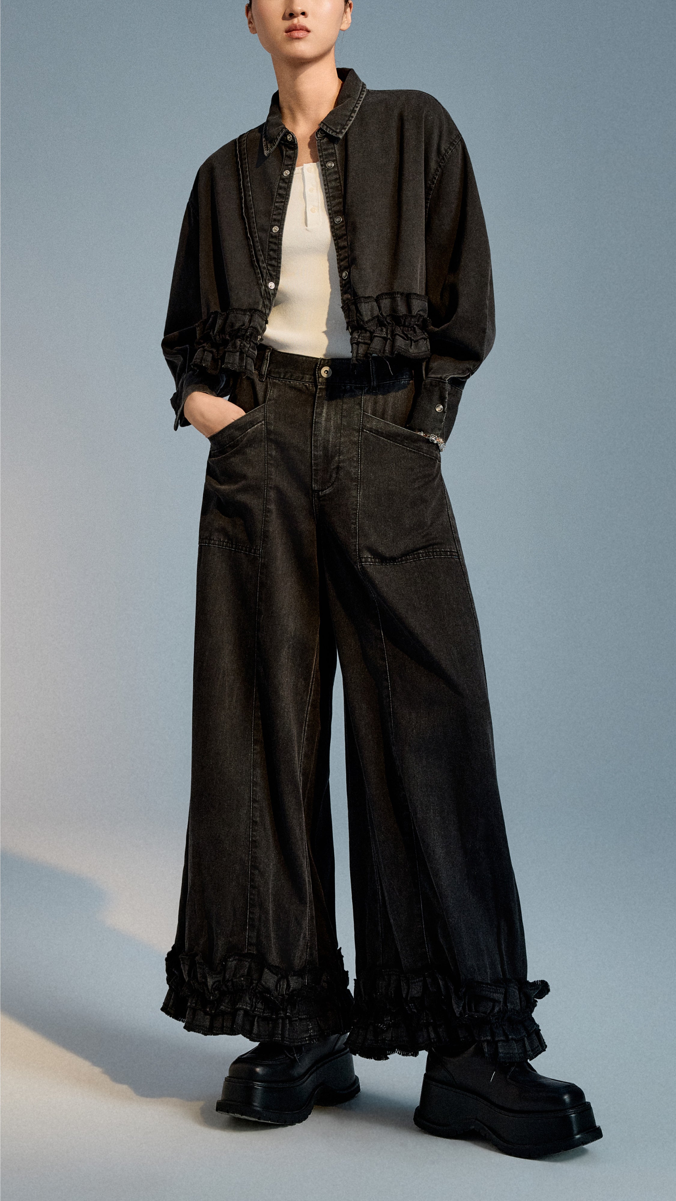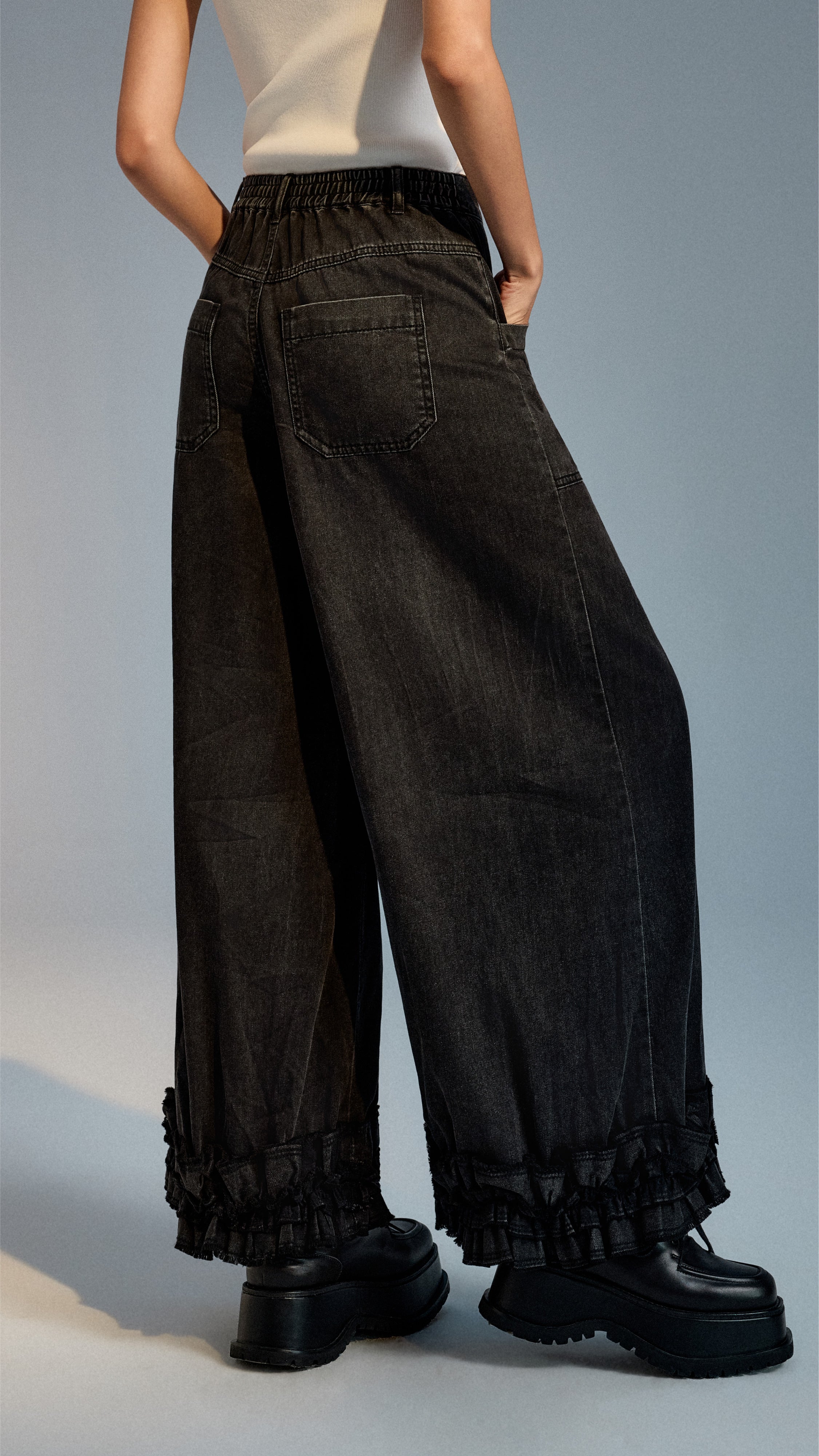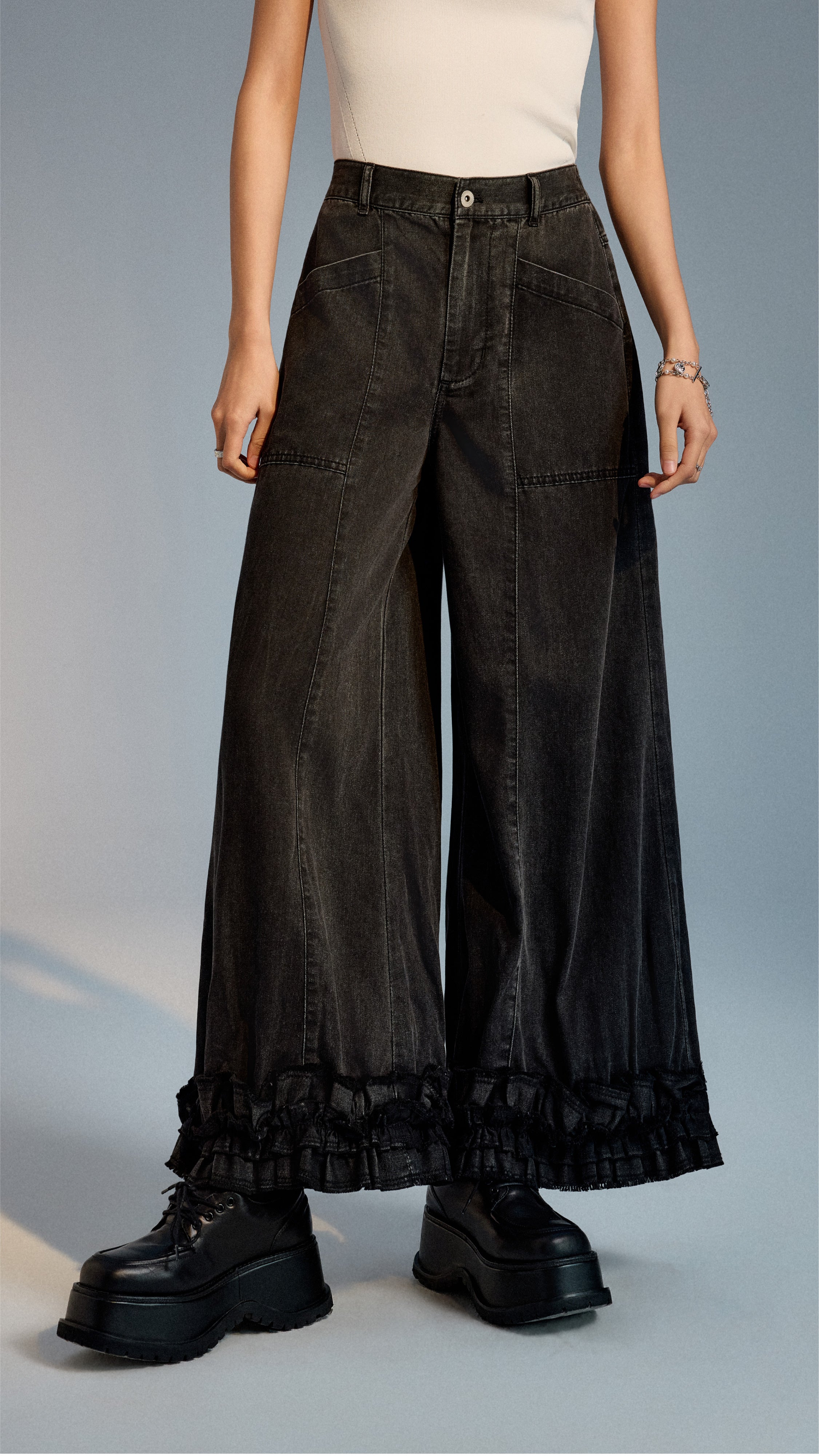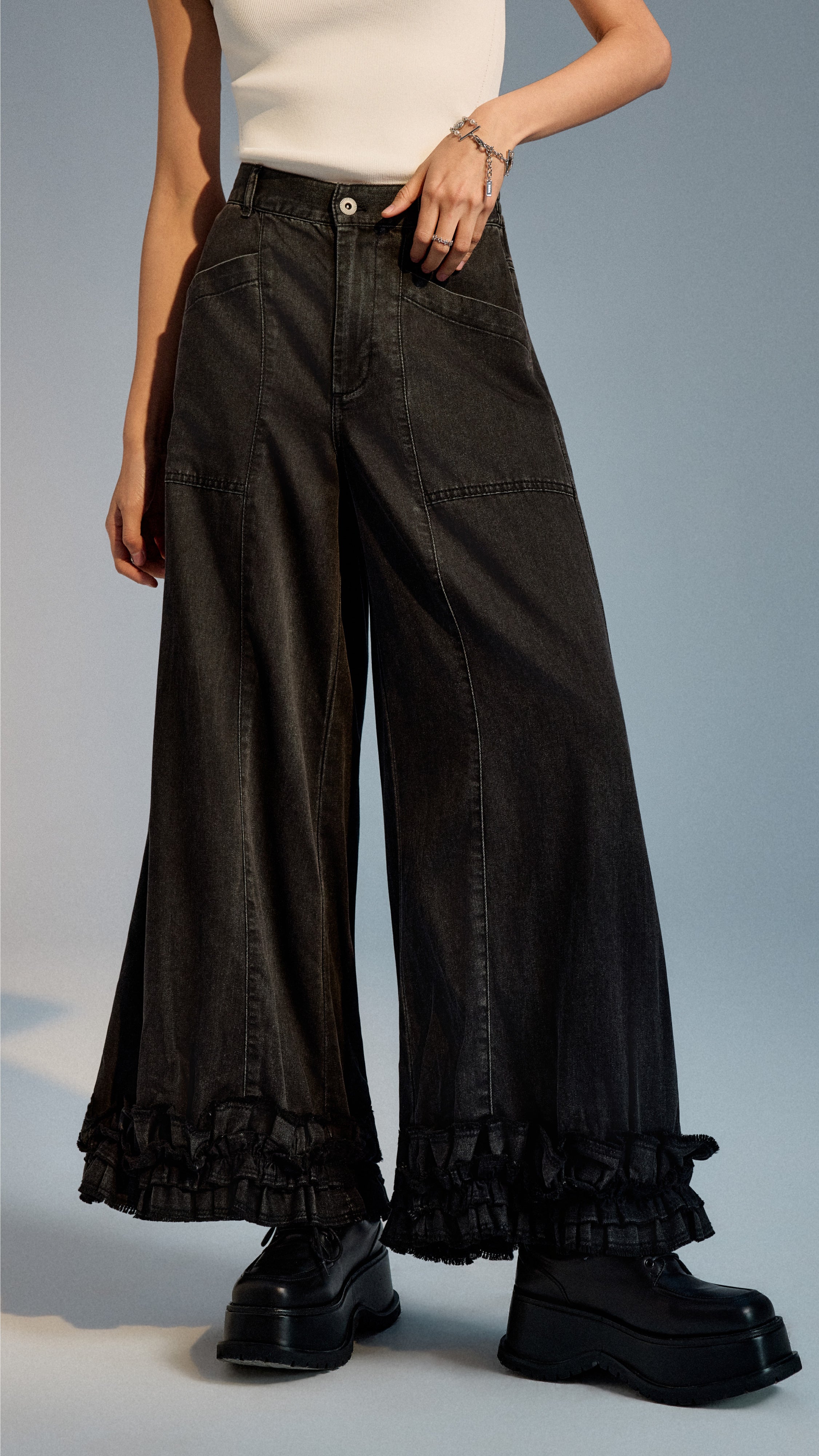 Ruffles-hem Wide Leg Jeans