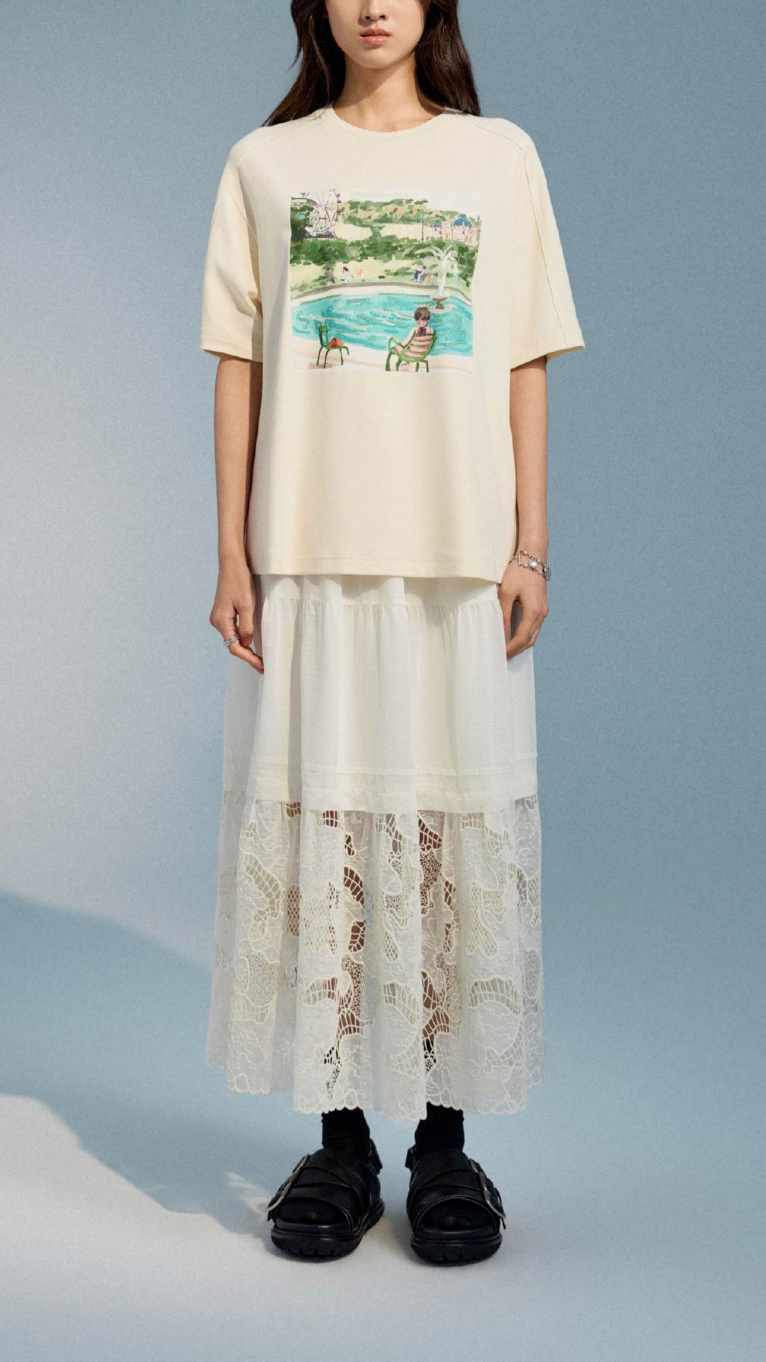 Cream oversized graphic tee
